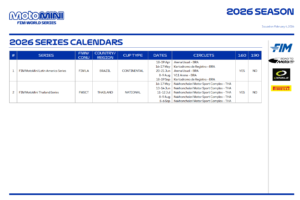 Dos nuevas Series se unen a la FIM MotoMini World Series en 2026: la FIM MotoMini Latin America Series y la FIM MotoMini Thailand Series. Ambas Series albergarán carreras de la categoría de 160cc, con Latinoamérica regresando tras un año de ausencia y Tailandia uniéndose a la lista por primera vez.
