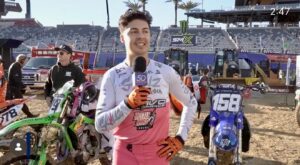 El AMA Súpercross dejó sin duda en nuestras memorias una de las mejores carreras en la historia de este extremo deporte; en esta oportunidad el estadio Snapdragon de la ciudad de San Diego, California sirvió de escenario para celebrar la segunda fecha de este mágico deporte que recogió tanta adrenalina. Todo estaba servido para recibir a los mejores pilotos en cada categoría, aunque la pista no fue la más grata para ellos debido a lo angosto y técnico de su diseño, aun así, pudieron ejercer la velocidad a través de sus máquinas. Arrancamos con la categoría 250cc Costa Oeste en donde logramos contar una vez más con el piloto el mexicano Tre Fierro quien la semana pasada no tuvo la suerte de clasificar para los heats en Anaheim; para esta ocasión regresó a esta segunda fecha de por fin encontrar el ritmo y la velocidad en este difícil trazado. Nuestro compatriota durante sus tiempos de clasificación intento en dos ocasiones de encontrar el ritmo y la velocidad para así ubicarse entre los mejores de esta clase, pero Desafortunadamente pudo depositarse en la posición 45 de los 40 que avanzaron a los heats de la noche. Durante el desarrollo de esta carrera final el actual campeón #1 Haiden Deegan marcó el nivel y su poderío logrando venir de la cuarta posición rebasando a su compañero Max Anstie en un pase muy agresivo que le costó su liderazgo; de igual modo en la segunda casilla se colocó Cameron Mcadoo y tercero lo hizo Michael Mosiman. Con este resultado Haiden Deegan le arrebata el plato rojo a su compañero por un punto.